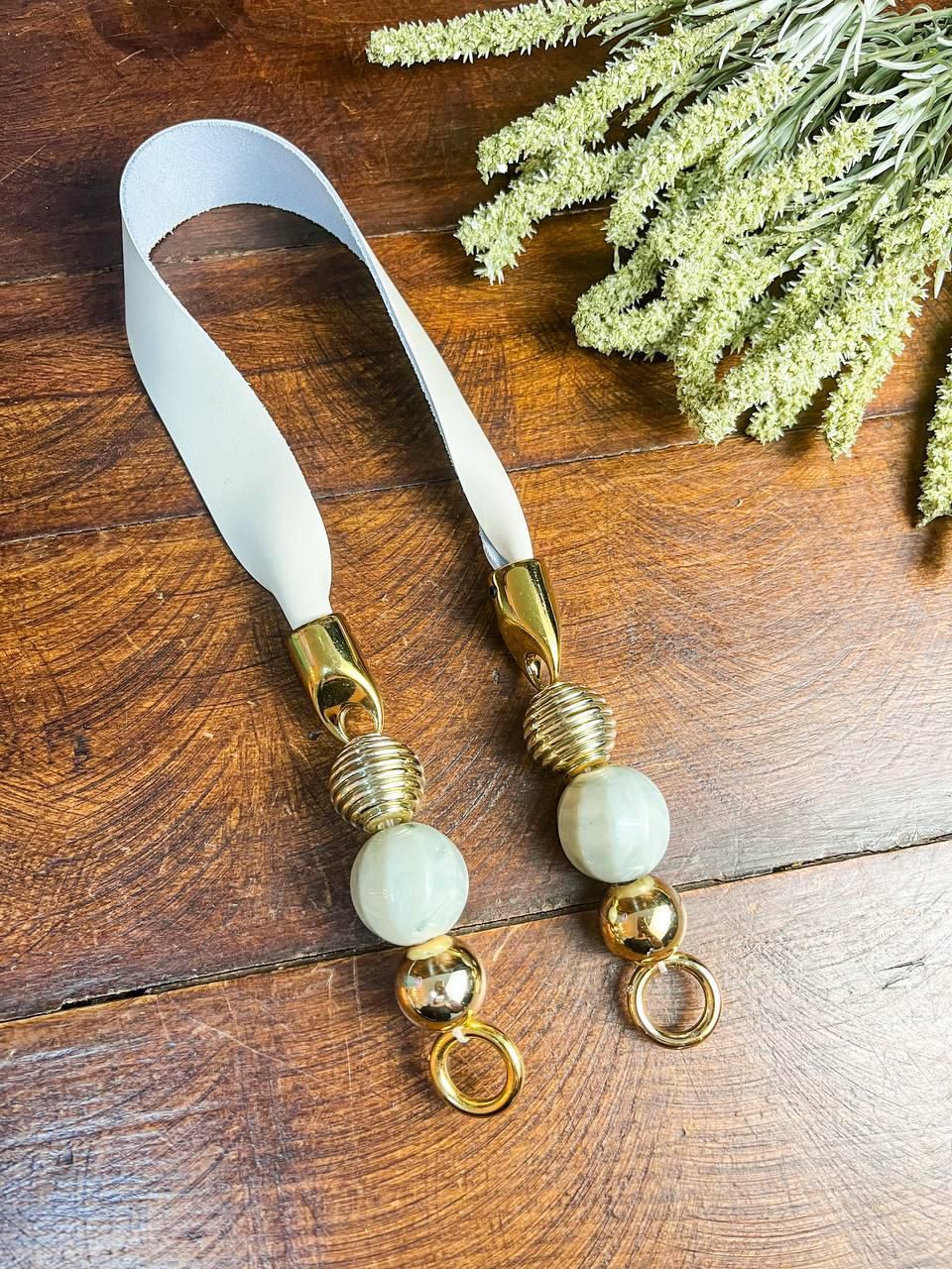 Alça Midi Couro+Queen Bee 2,5x60cm - Bege/Dourado/Mescla Verde