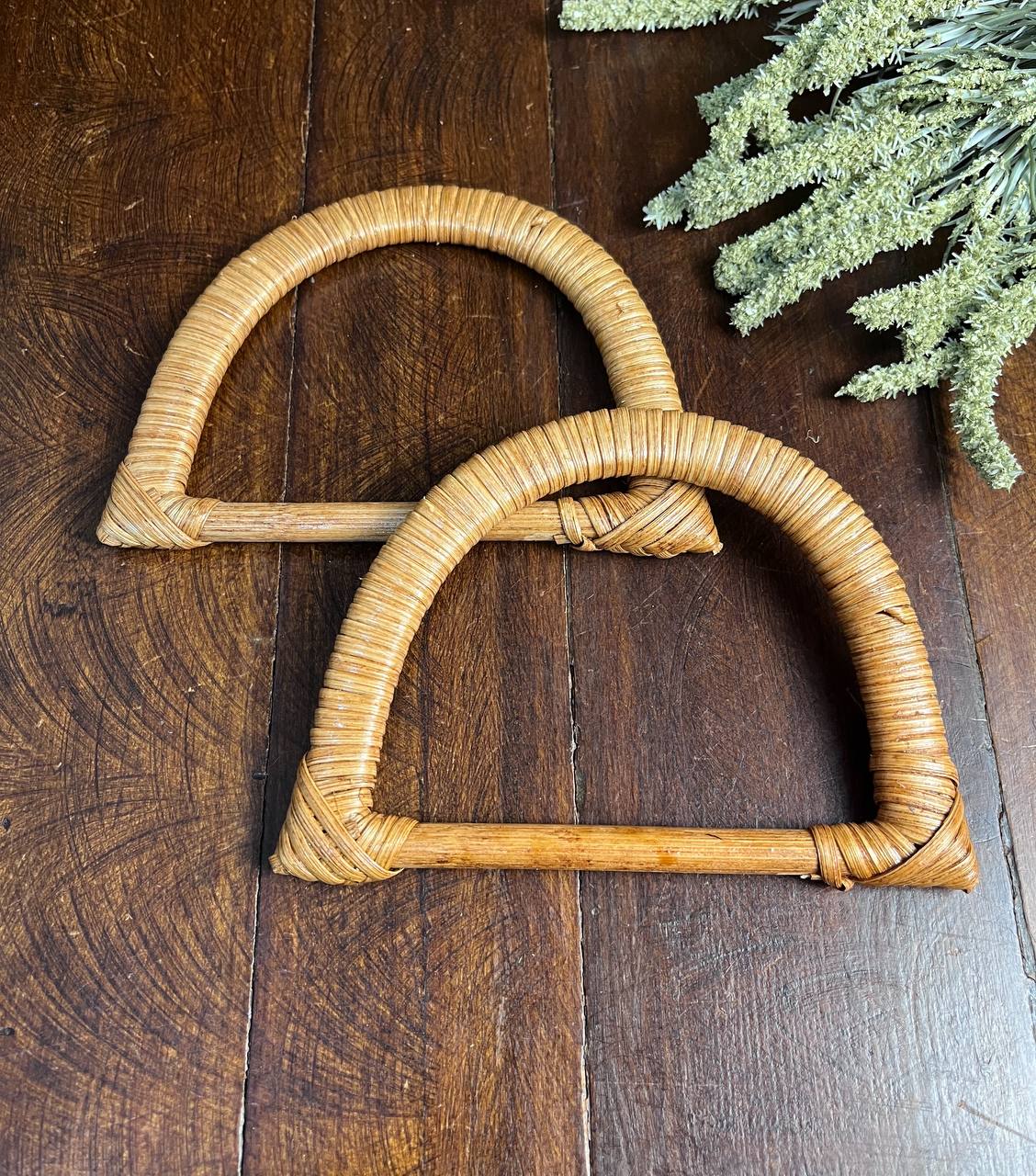 Alça Rattan Meia Lua 15x10,5cm - Par - Caramelo