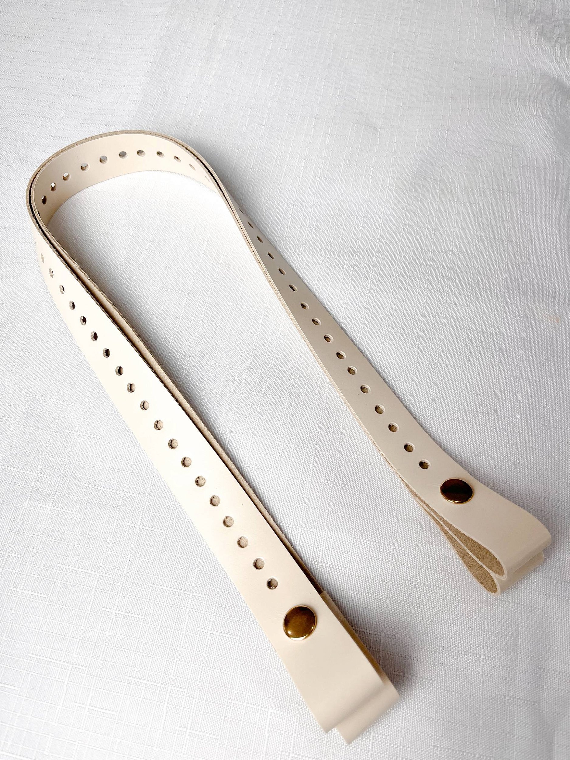 Alça de Couro Pressão com Furos 2,5x65cm-Bege/Dourado