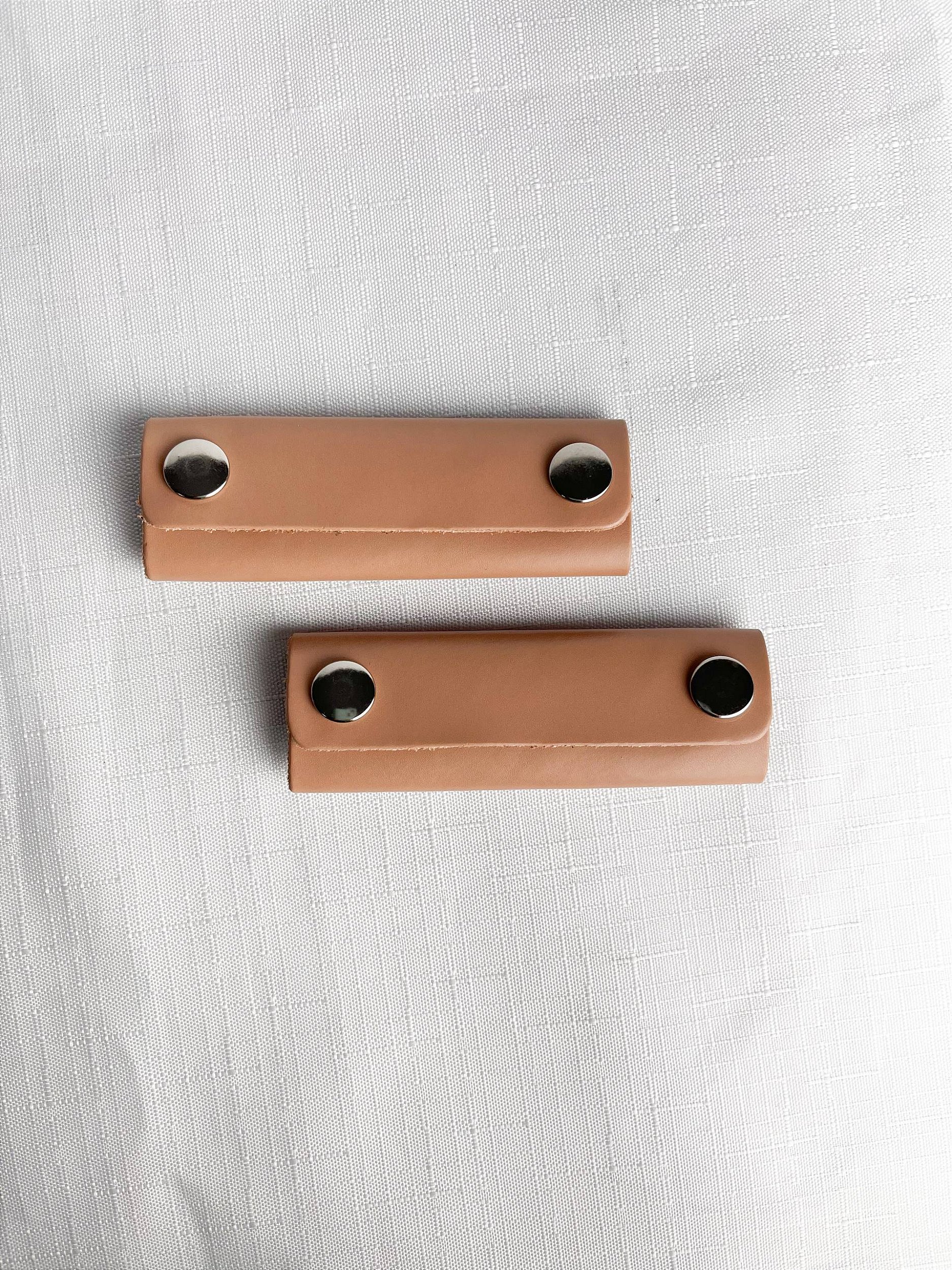 Apoio de Mão p/ Alça Couro Legítimo 3,5x10cm - Caramelo Claro/Niquel