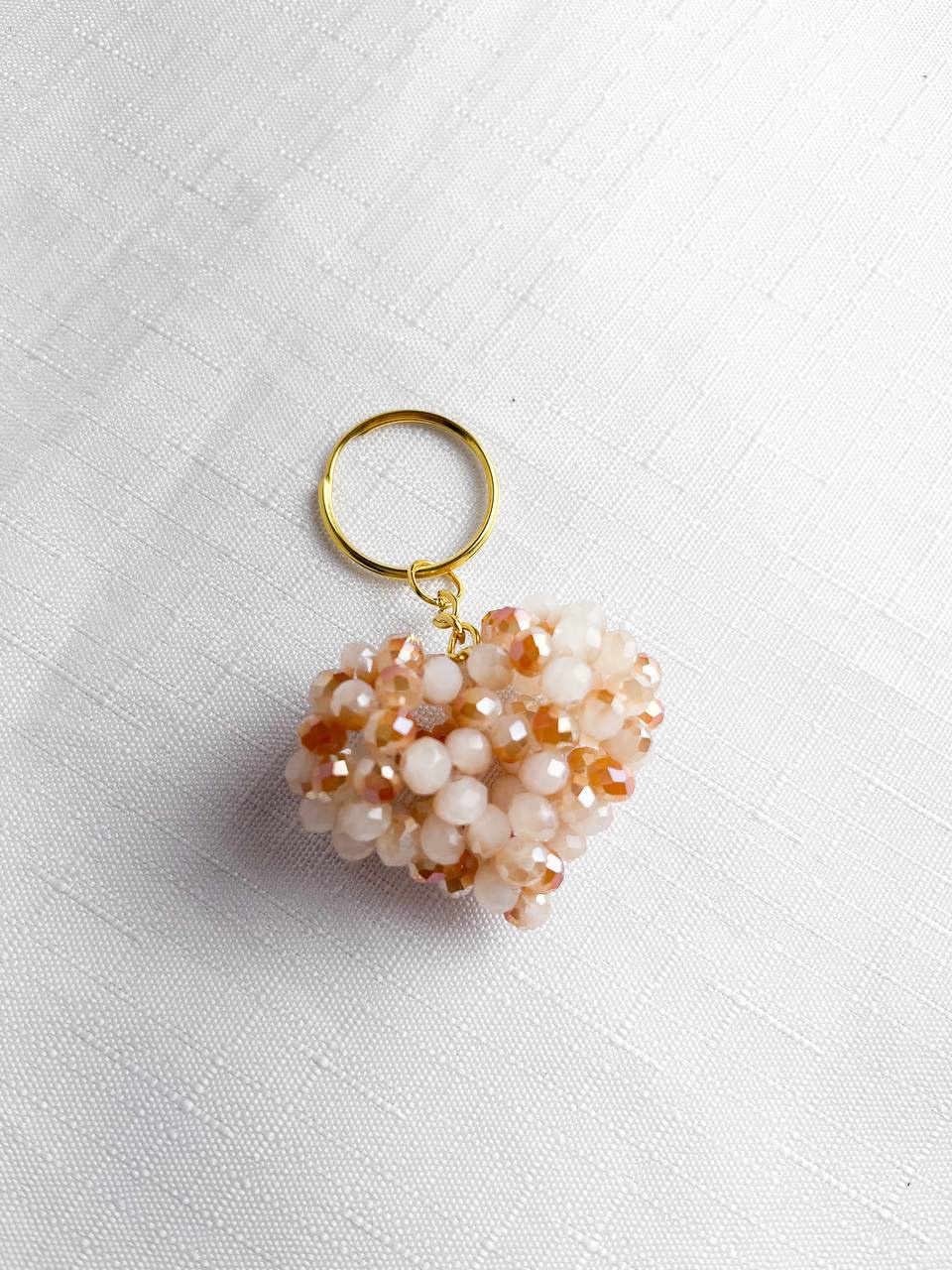 Chaveiro Coração 4,5x4x2,5cm-Cristal Bronze/Branco