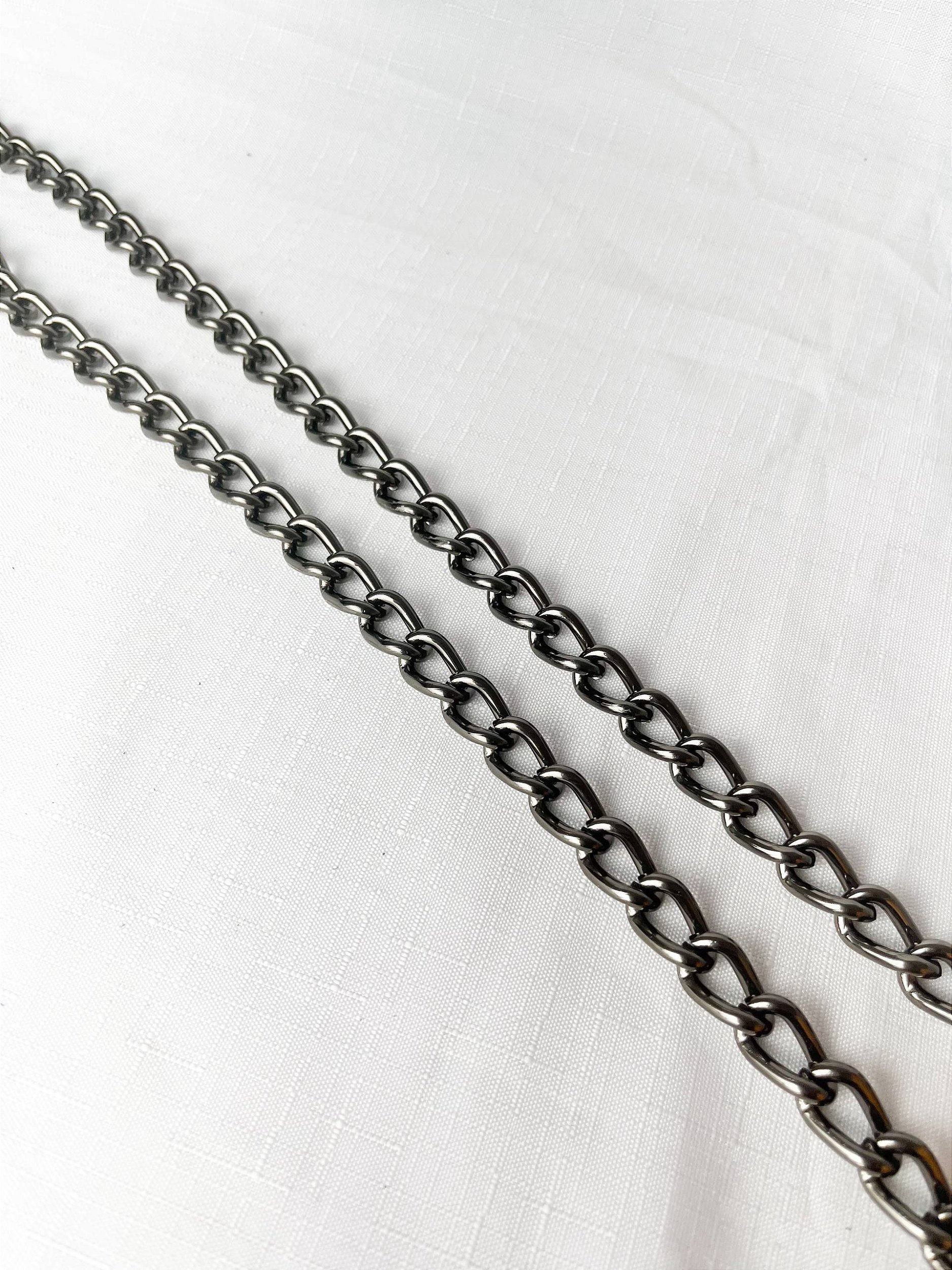 • Dimensões dos Elos: Os elos da corrente têm 13mm de largura e 22mm de comprimento, oferecendo um visual marcante e imponente, perfeito para alças de bolsas, colares, pulseiras, chaveiros e outros acessórios personalizados.