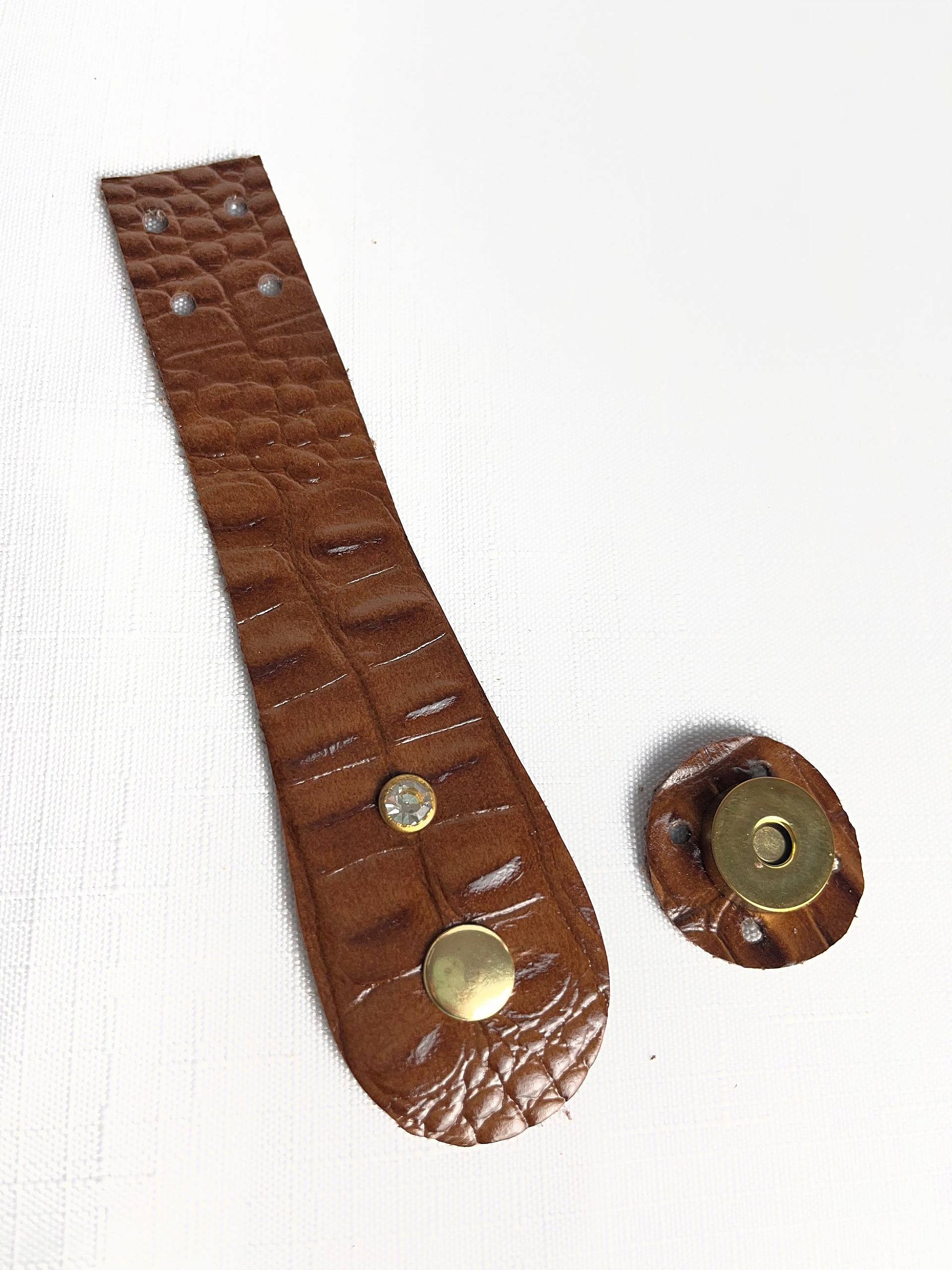 Fechamento para Bolsa 2,5x15cm Croco com Strass e botão Imã