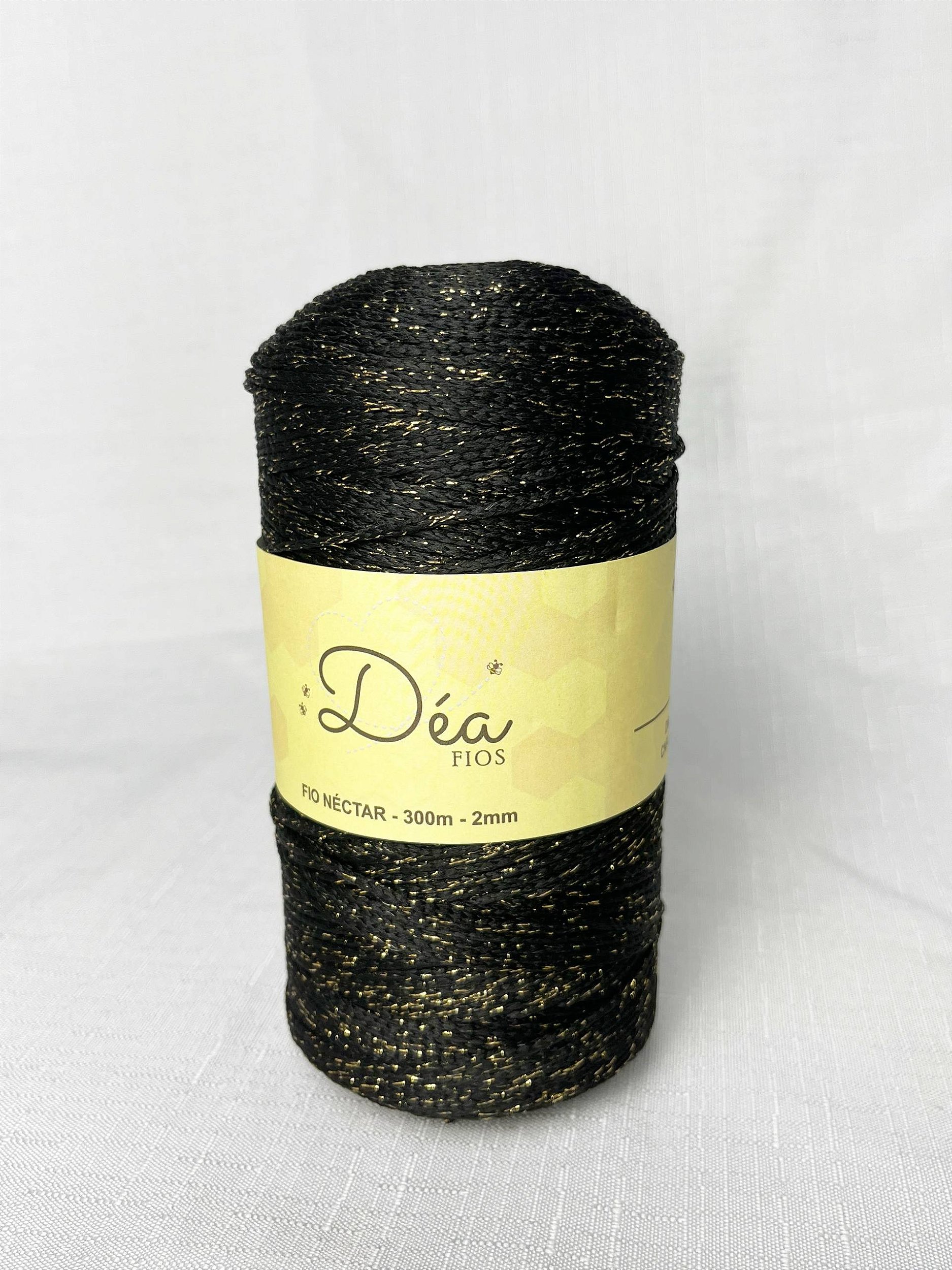 Fio Néctar 2mm - 300g-350m - Poliéster - Cor:Preto Lurex Dourado