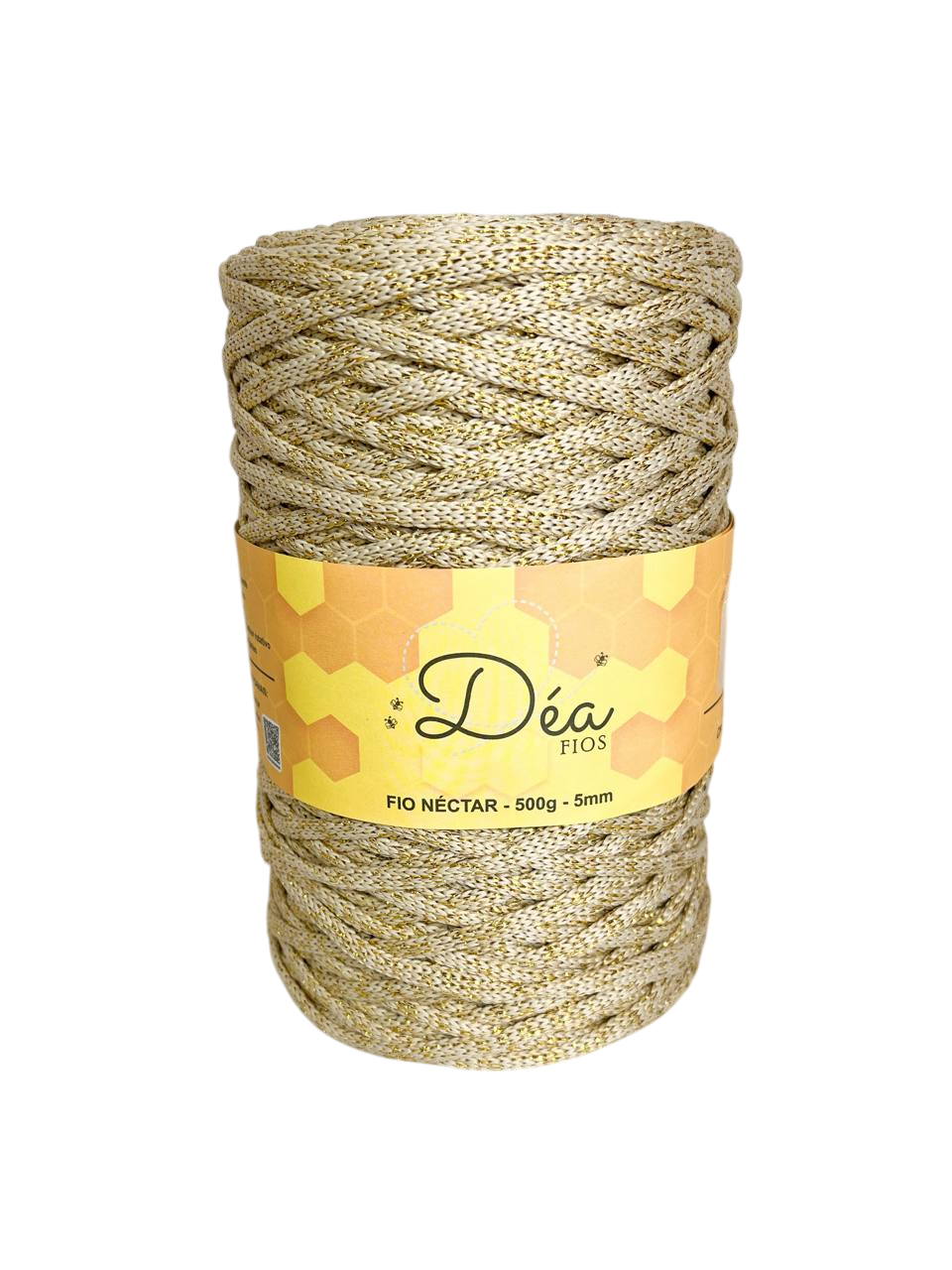 Fio Néctar 5mm - 500g-200m - Poliéster - Marfim Lurex Dourado