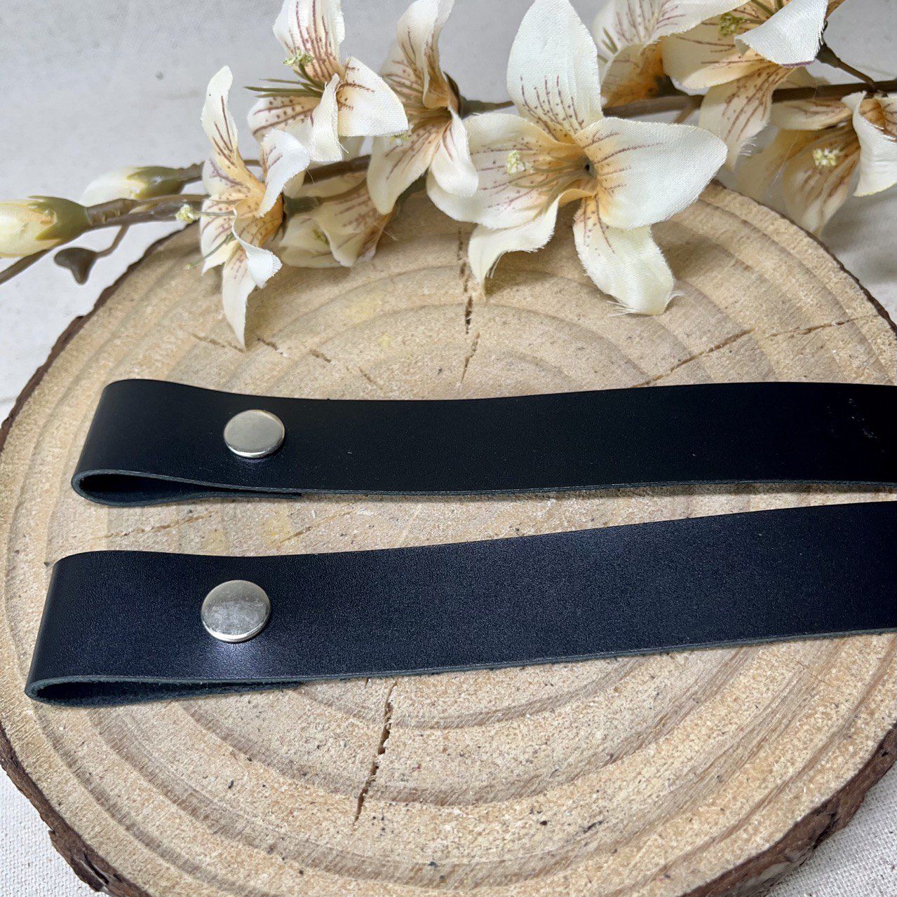 Par de alças em couro para bolsa ou mateira, com botão de pressão.