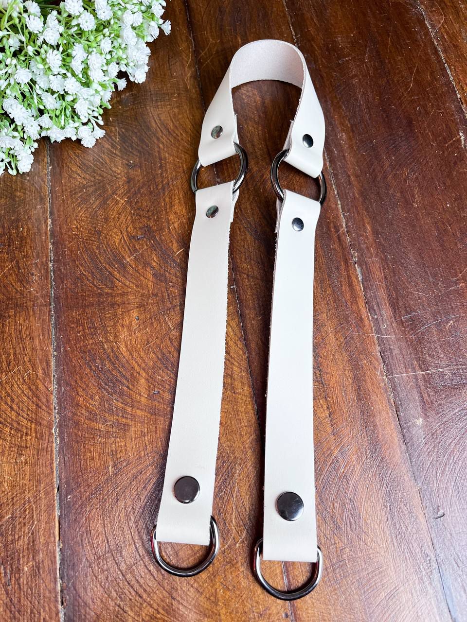 Alça em couro para bolsa ou mateira, com botão de pressão.