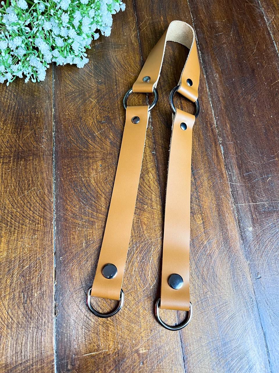 Alça em couro para bolsa ou mateira, com botão de pressão.