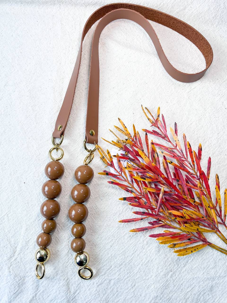 Alça Ombro Couro+Queen Bee 2x106cm - Caramelo Escuro, Charuto & Dourado