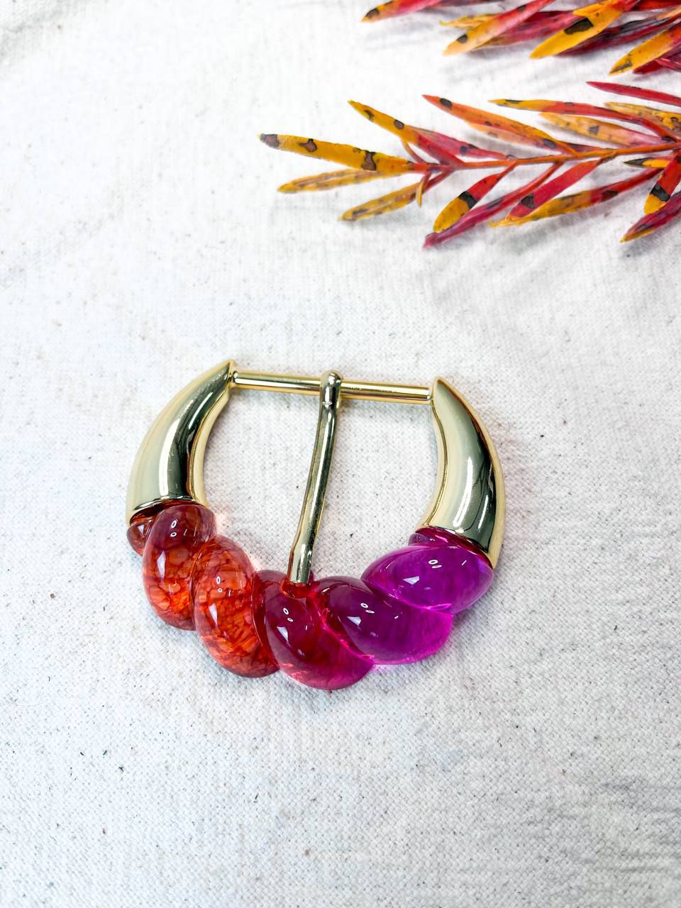 Fivela Resina Hibísco/Orange e Dourado